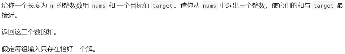 def threeSumClosest(self, nums: List[int], target: int) -> int: